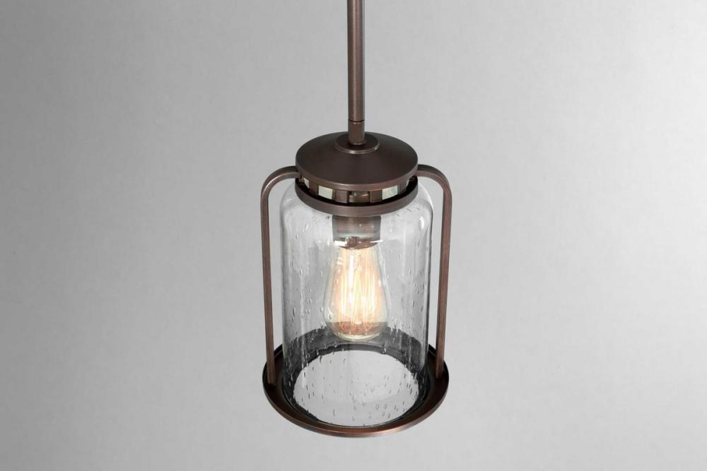 Casual feel with vintage flair.;Complements both interiors and exteriors.;Finely crafted accents highlight clear seeded glass.;Includes one 6", four 12" stems and 6 Links of chain.