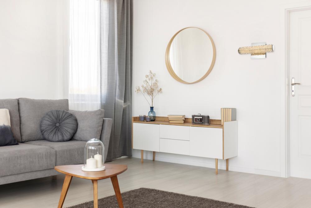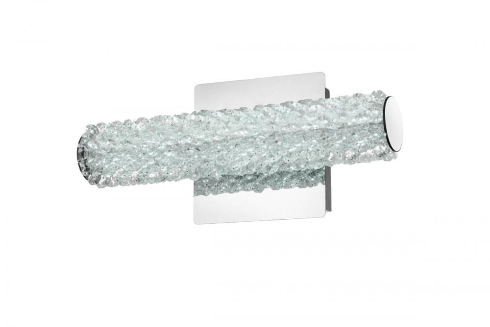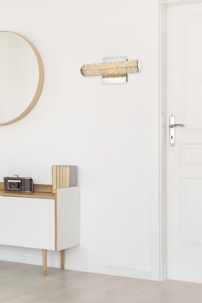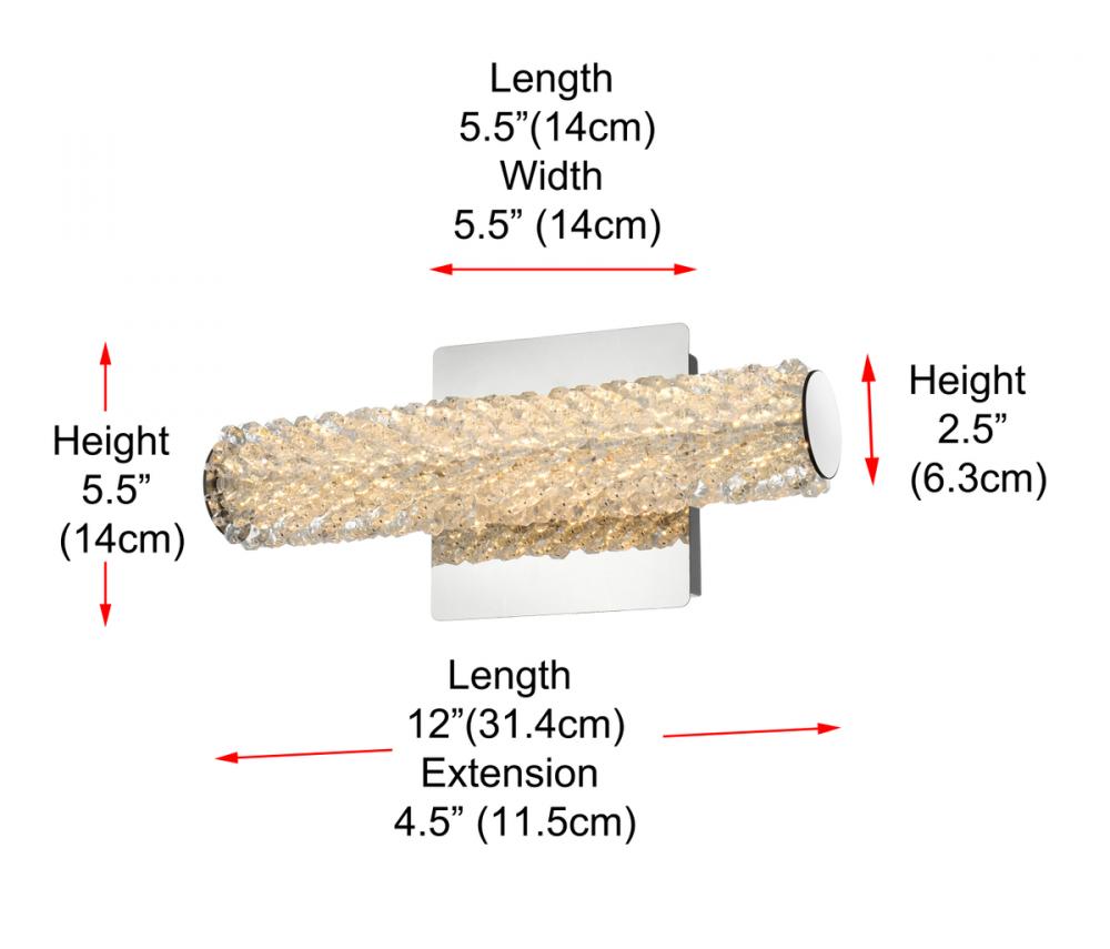 Illuminate your space with this exquisite crystal wall sconce, boasting a sleek and horizontal cylindrical design measuring 12 inches with a 5.5 inch backplate.