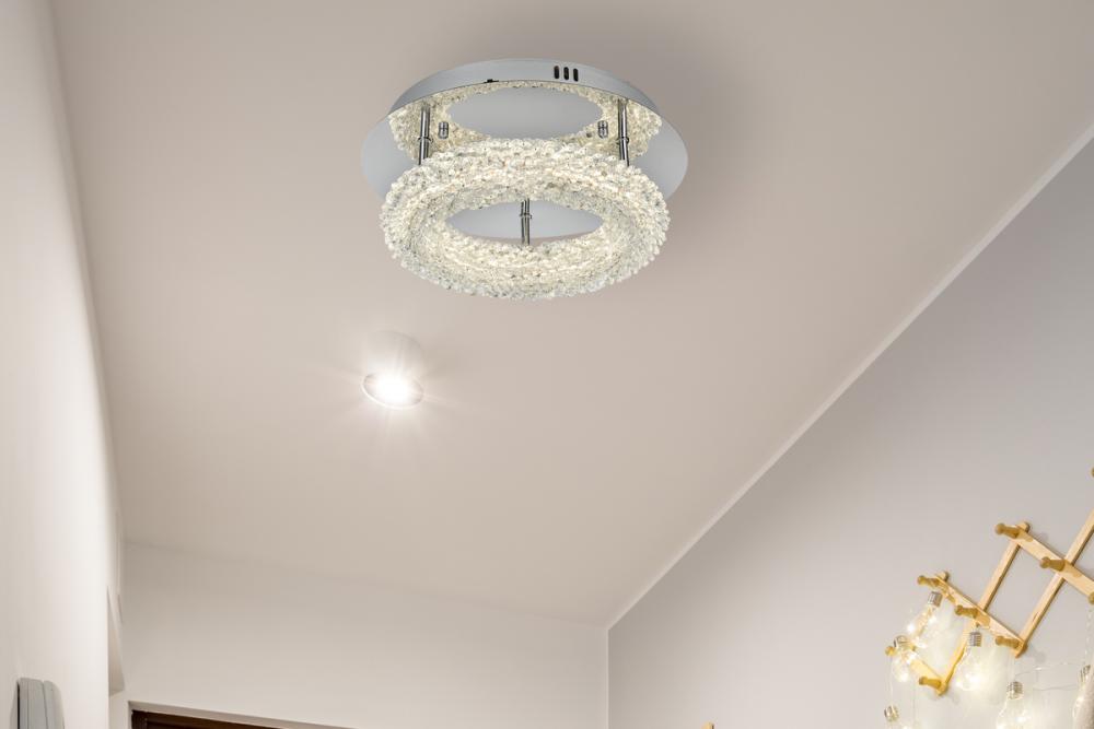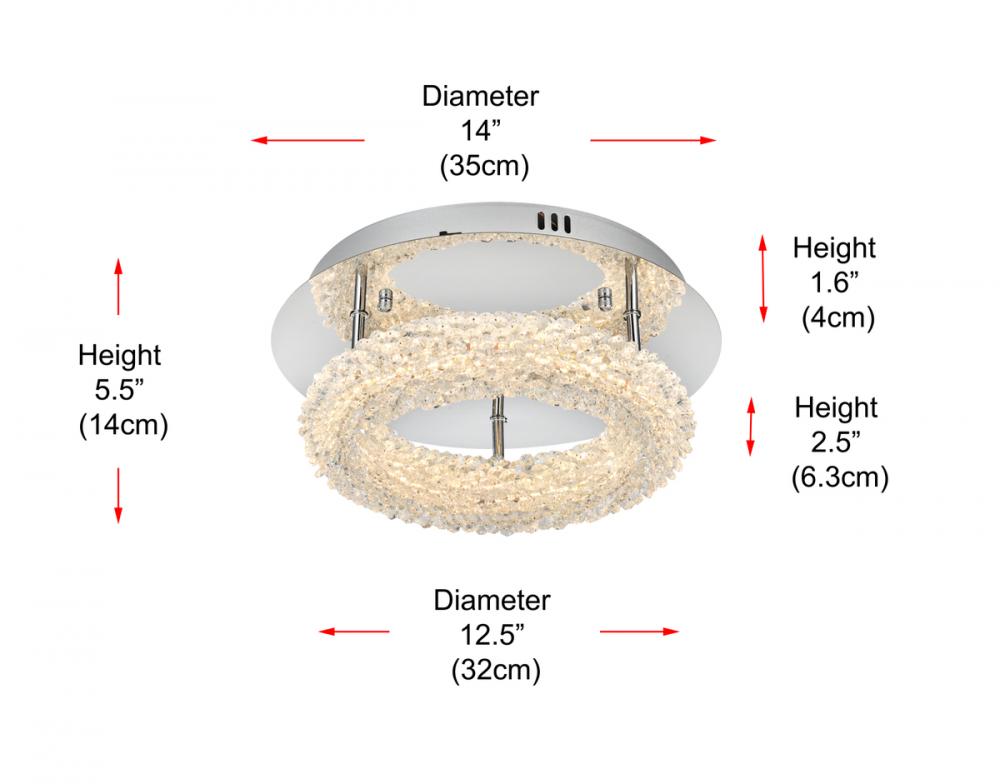 Elevate your space with this enchanting 14 inch LED Flush Mount, featuring a captivating round crystal-adorned design for a touch of sophistication.