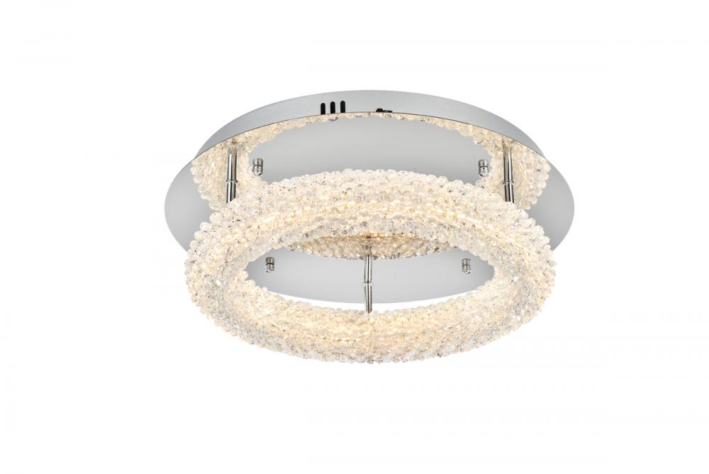 Elevate your space with this enchanting 18 inch LED Flush Mount, featuring a captivating round crystal-adorned design for a touch of sophistication.