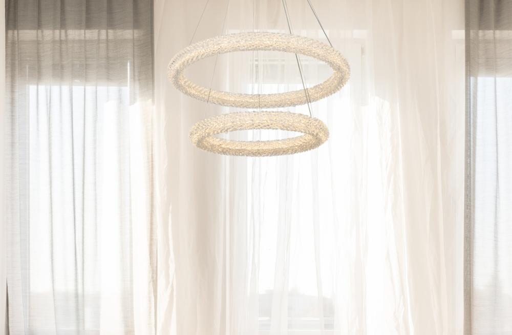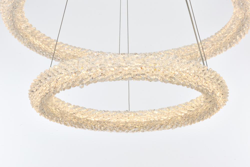 Illuminate your space with this enchanting 28 inch LED Tiered Chandelier, showcasing two captivating rings adorned with crystals for a touch of sophistication.
