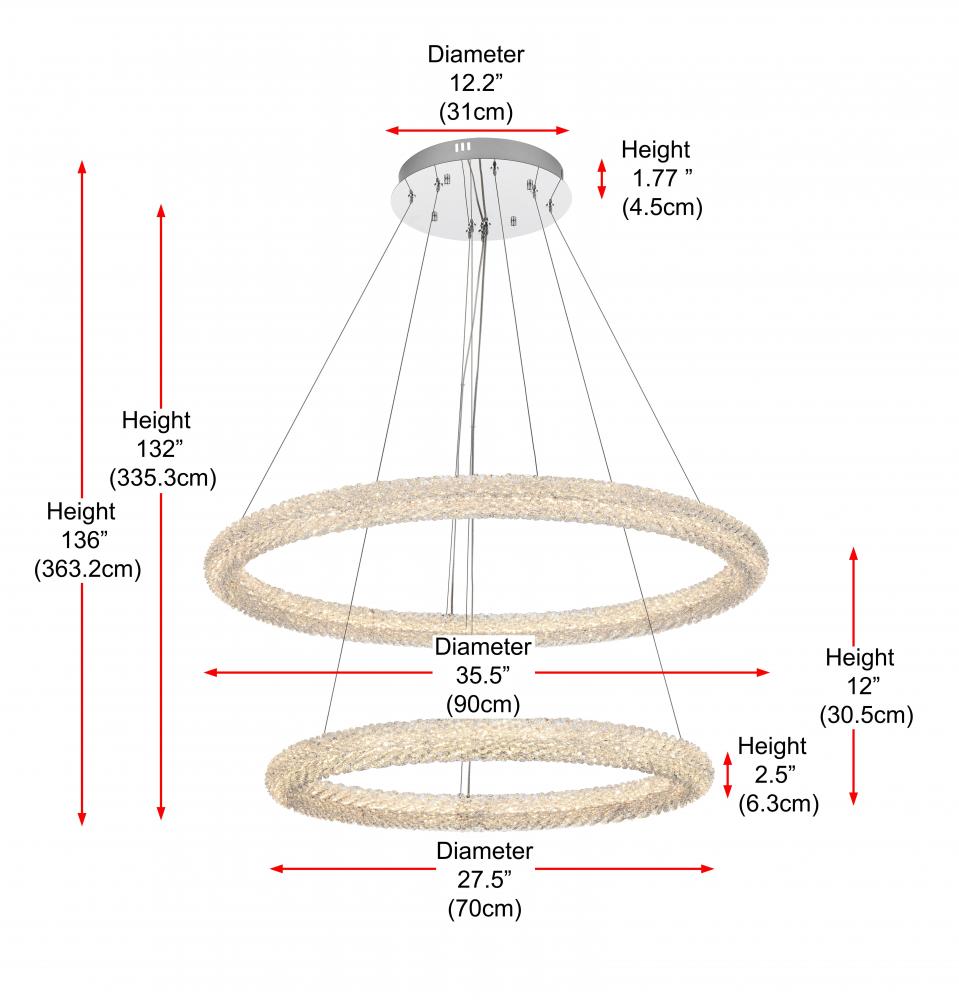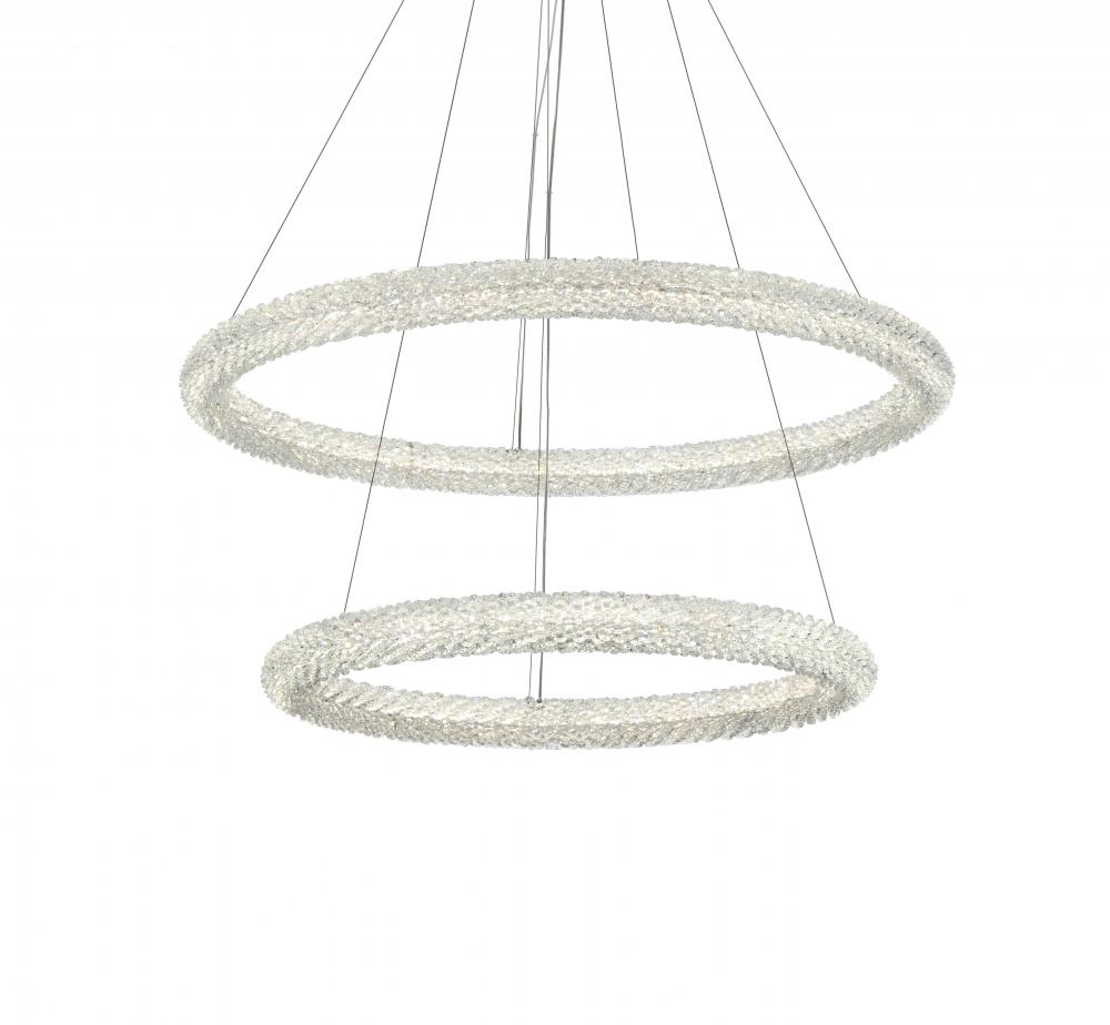 Illuminate your space with this enchanting LED Tiered Chandelier, showcasing two captivating rings adorned with crystals for a touch of sophistication.