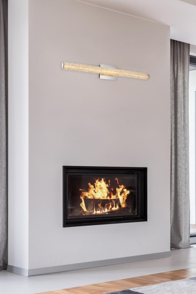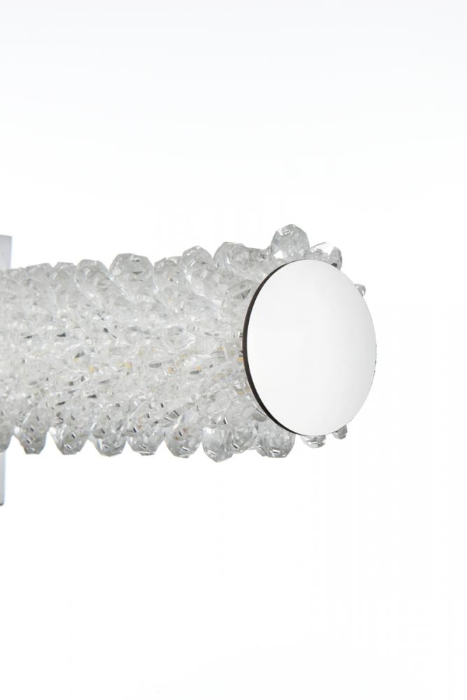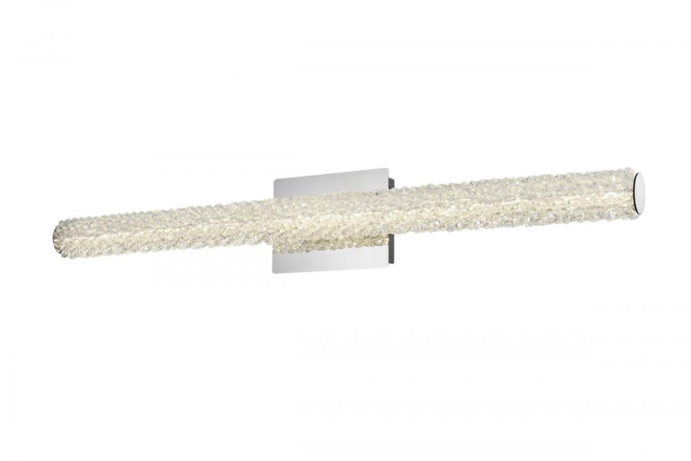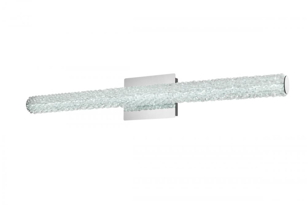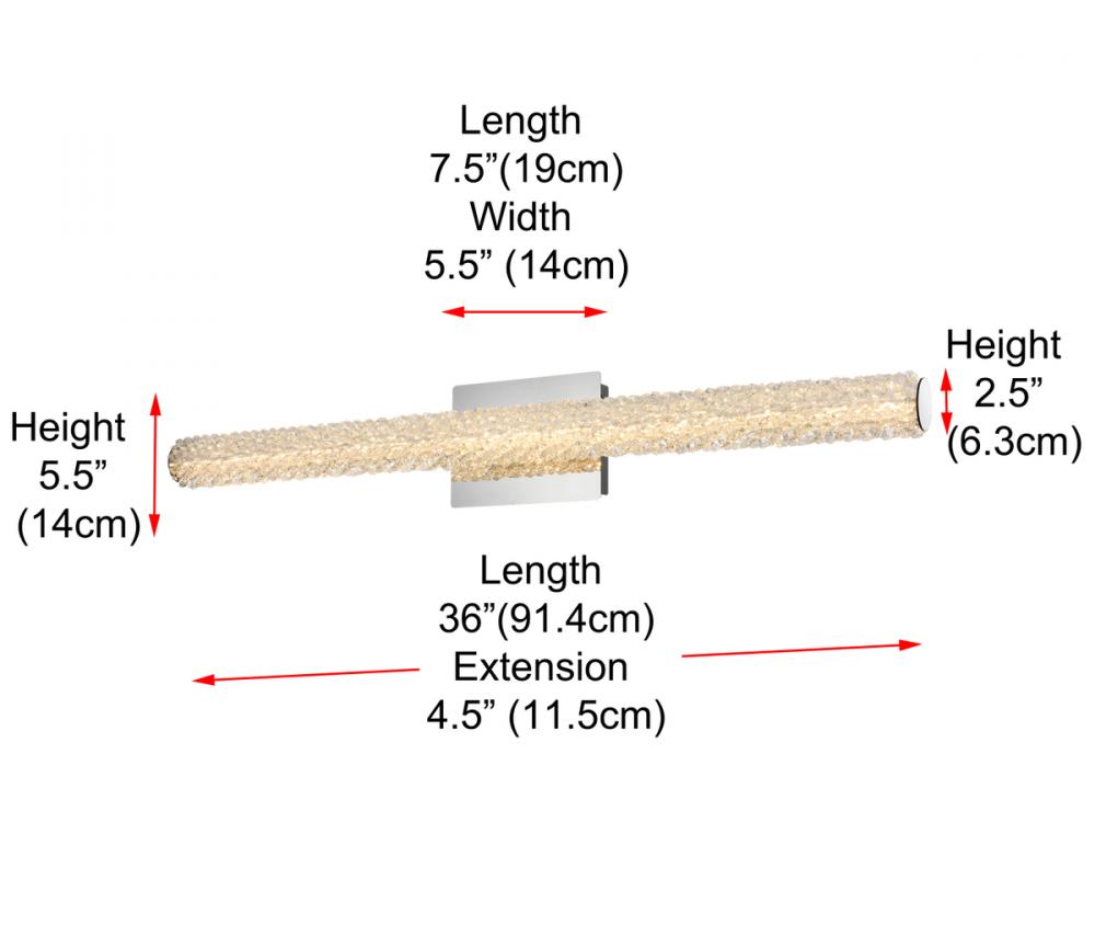 Illuminate your space with this exquisite crystal wall sconce, boasting a sleek and horizontal cylindrical design measuring 36 inches with a 7.5 inch backplate.
