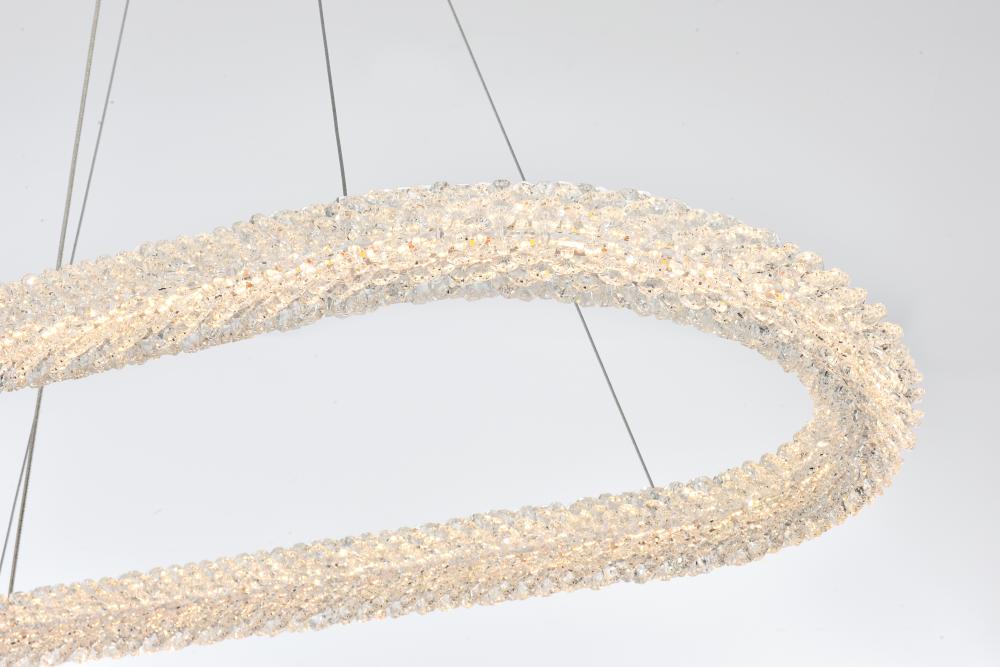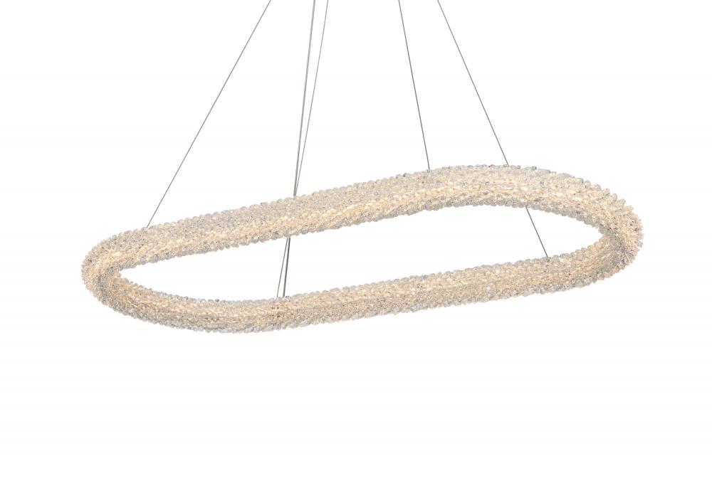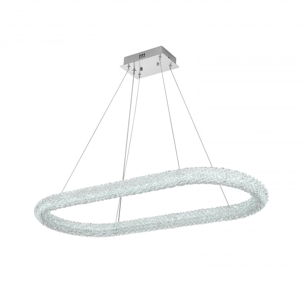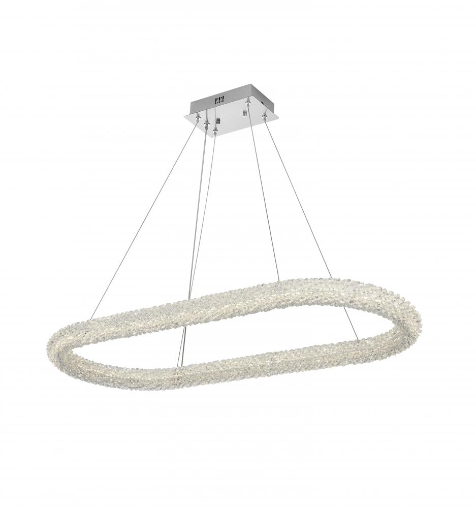 Elevate your space with this captivating 42 inch LED Chandelier, presenting a captivating oblong crystal-adorned chandelier paired with an elegant 9-inch canopy for a touch of sophistication.