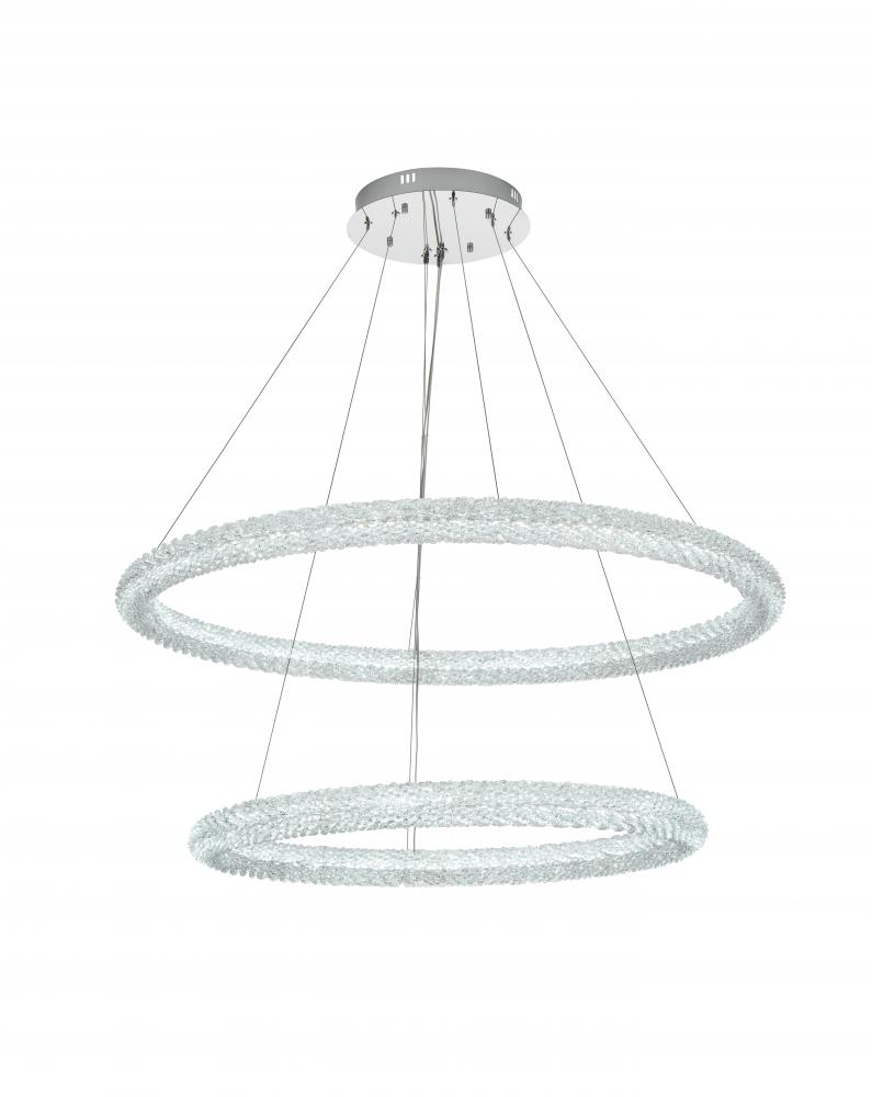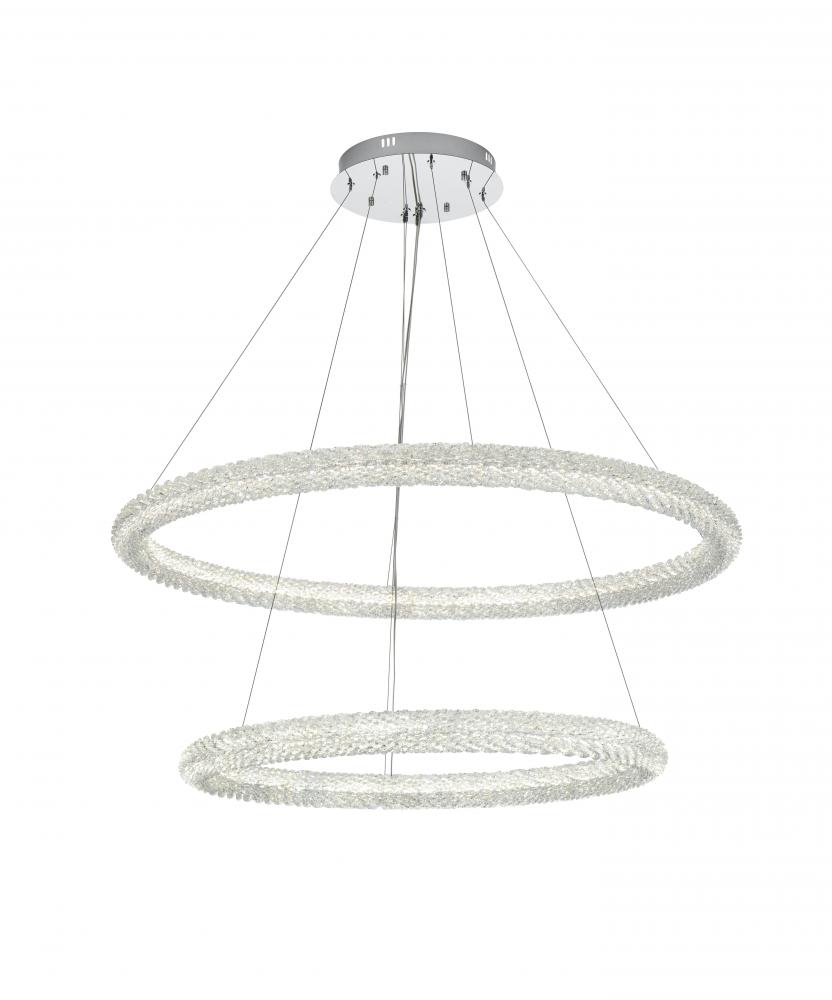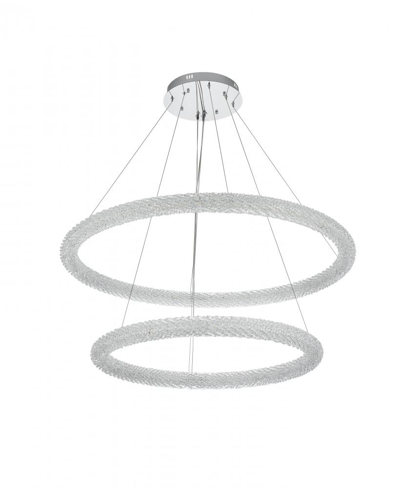 Illuminate your space with this enchanting LED Tiered Chandelier, showcasing two captivating rings adorned with crystals for a touch of sophistication.