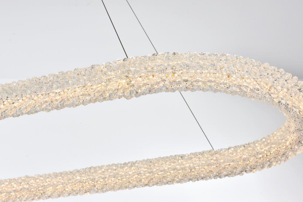 Elevate your space with this captivating 51 inch LED Chandelier, presenting a captivating oblong crystal-adorned chandelier paired with an elegant 9-inch canopy for a touch of sophistication.