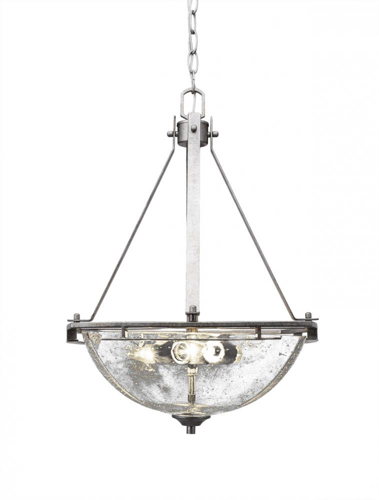 Uptowne Pendant With 3 Bulbs Shown In Aged Silver Finish With 13.5 Clear Bubble Glass