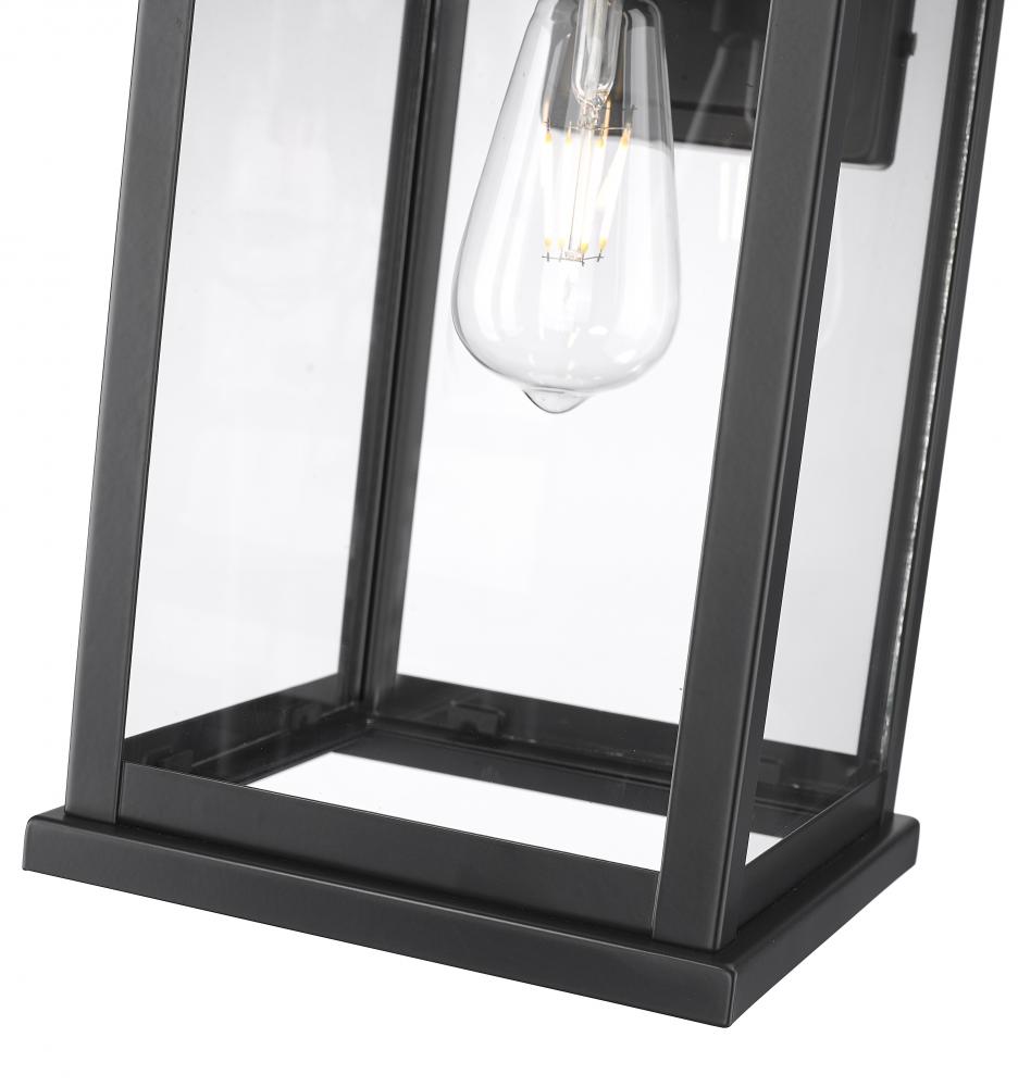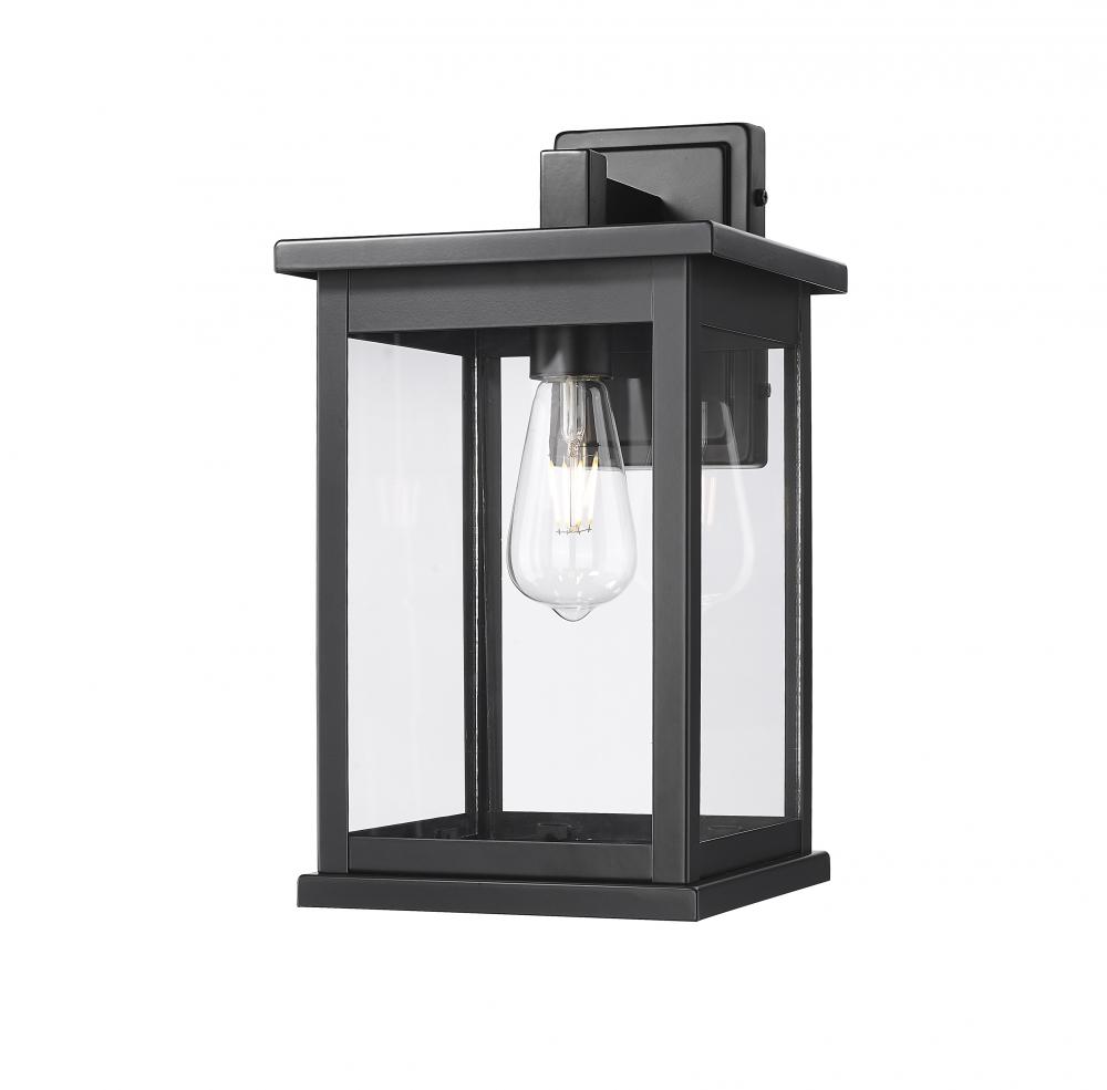 The Bowton II Collection of exterior sconces is a fresh take on the classic Art and Crafts design philosophy characterized by clean straight lines. The overall look creates the perfect vintage touch for modern farmhouse or craftsman bungalow. Finished in quintessential powder coat black with clear glass panels, the fixtures are available in a variety of sizes, making them the perfect selection for porches and walkways.