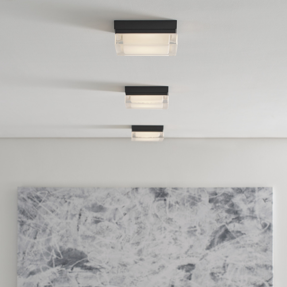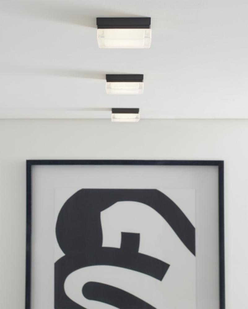 The Boxie ceiling fixture by Sean Lavin is ultra-clean and ultra-modern with its square pressed glass and hand-polished surface. A sleek metal base made of die-cast metal beautifully anchors the glass below. Available in modern finishes. Available lamping options include energy efficient LED or incandescent, both lamping options are fully dimmable to create the perfect ambiance in your special space.