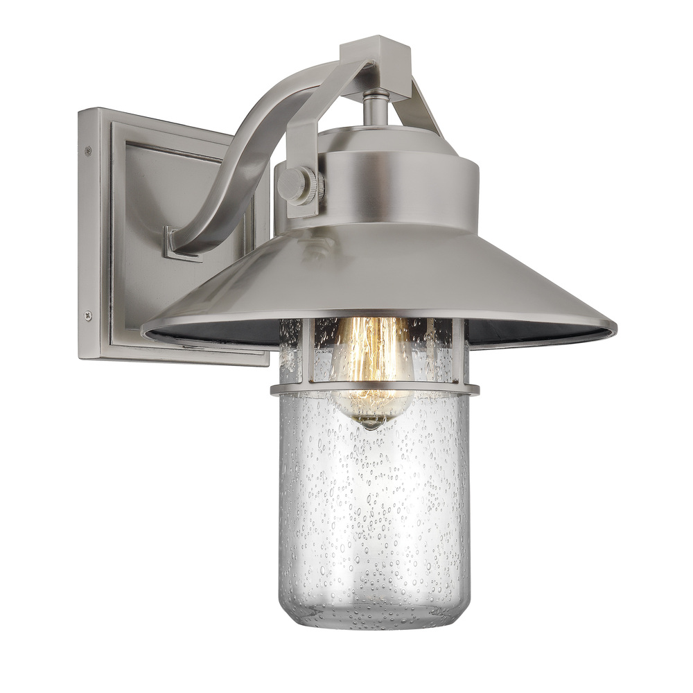 The Sean Lavin Boynton one-light outdoor pendant fixture in painted brushed steel creates a warm and inviting welcome presentation for your home's exterior. Taking inspiration from the industrial and nautical design and boasting a Painted Brushed Steel finish, the Boynton outdoor collection by Sean Lavin makes a style statement that is equally suited for indoors or out. Boynton has arm extension, like a shepherd's crook, and handle details that hold the fixture firmly in place. Constructed of a proprietary StoneStrong material for added strength, durability, and longevity, the collection offers a 5-year warranty.
