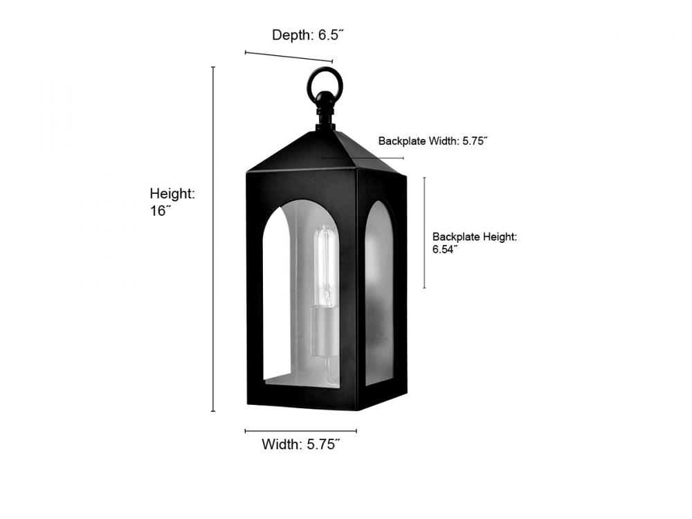 This outdoor wall sconce is 5.75 in. width x 16 in. height