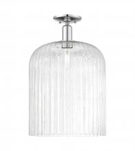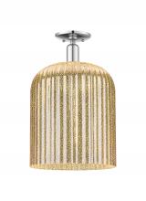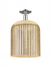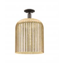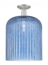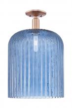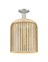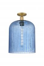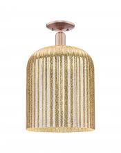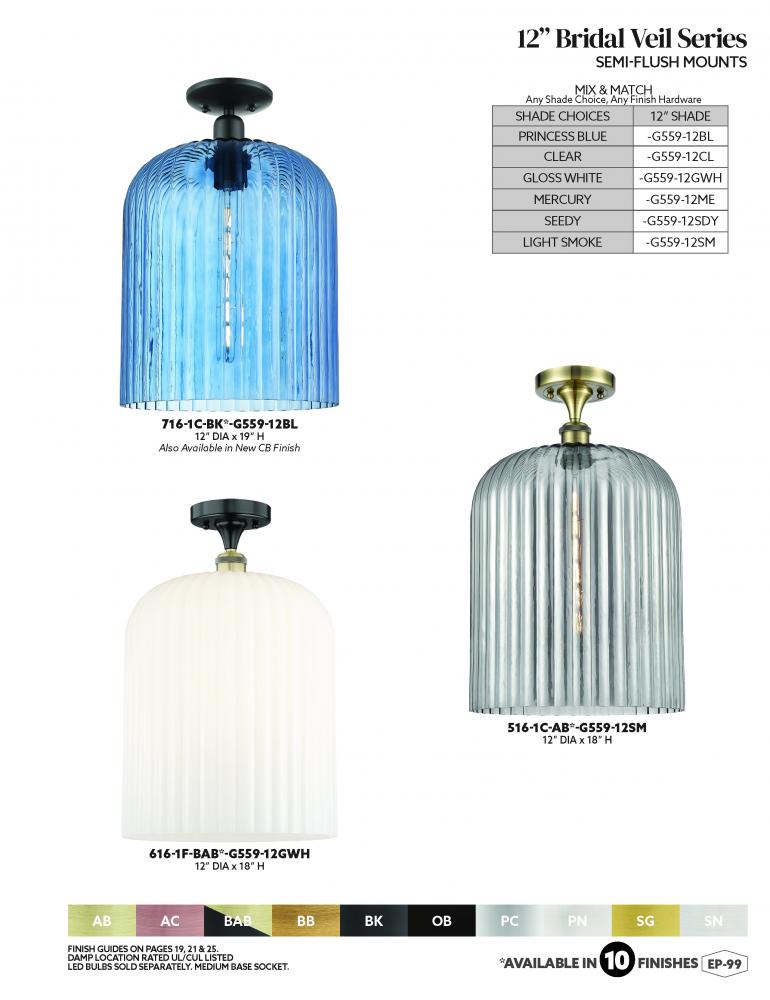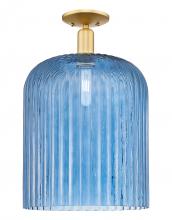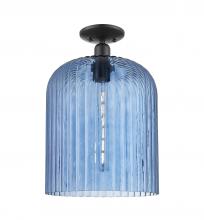 Bridal Veil - 1 Light - 12 inch - Antique Brass - Blue Bridal Veil Shade - Semi-Flush Mount