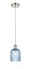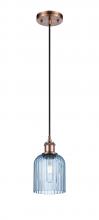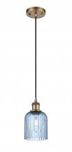Bridal Veil - 1 Light - 5 inch - Antique Brass - Princess Blue Shade - Cord hung - Mini Pendant