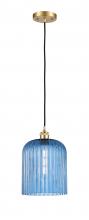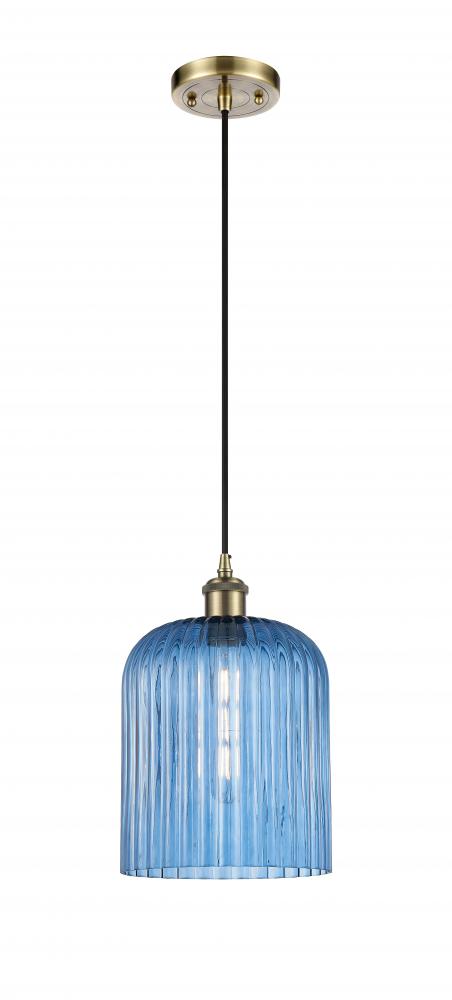 Bridal Veil - 1 Light - 5 inch - Antique Brass - Princess Blue Bridal Veil Shade - Cord hung - Mini Pendant