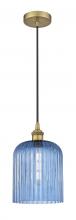 Bridal Veil - 1 Light - 5 inch - Antique Brass - Princess Blue Bridal Veil Shade - Cord hung - Mini Pendant