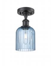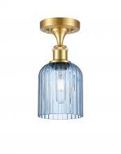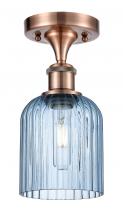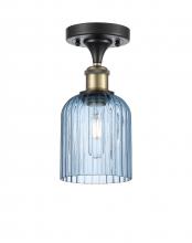 Bridal Veil - 1 Light - 5 inch - Antique Brass - Princess Blue Shade - Semi-Flush Mount