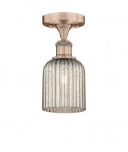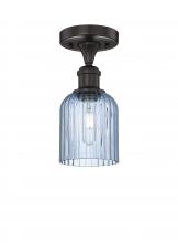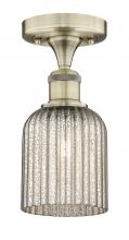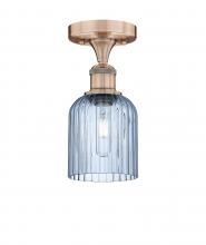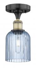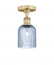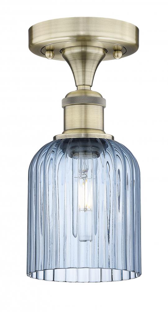 Bridal Veil - 1 Light - 5 inch - Antique Brass - Princess Blue Shade - Semi-Flush Mount
