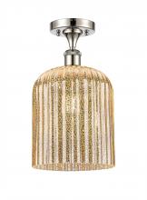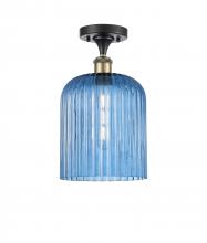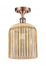 Bridal Veil - 1 Light - 5 inch - Antique Brass - Princess Blue Bridal Veil Shade - Semi-Flush Mount
