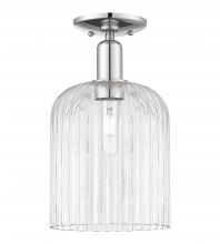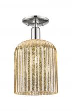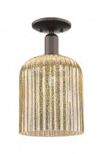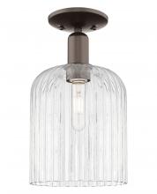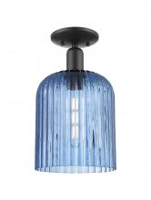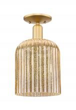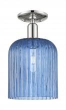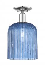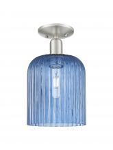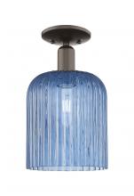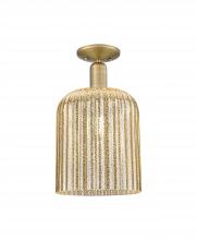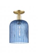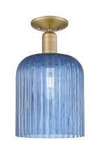 Bridal Veil - 1 Light - 8 inch - Antique Brass - Blue Bridal Veil Shade - Semi-Flush Mount