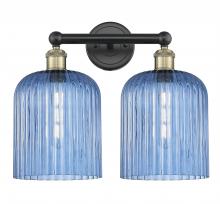 Bridal Veil - 2 Light - 14 inch - Antique Brass - Princess Blue Bridal Veil Shade - Bath Vanity Light