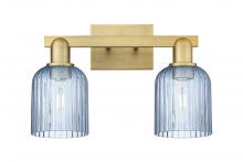 Bridal Veil - 2 Light - 16 inch - Antique Brass - Blue Deco Swirl Shade - Bath Vanity Light
