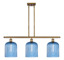 Bridal Veil - 3 Light - 36 inch - Antique Brass - Princess Blue Bridal Veil Shade - Stem hung - Island Light