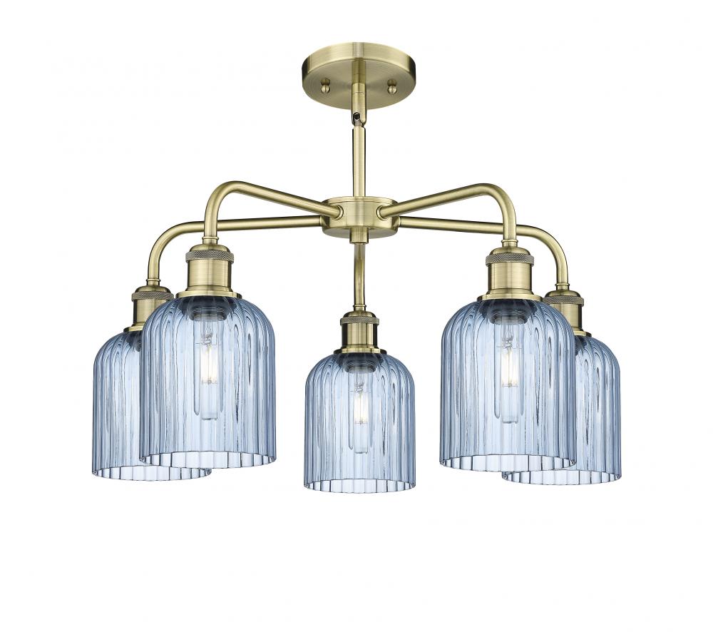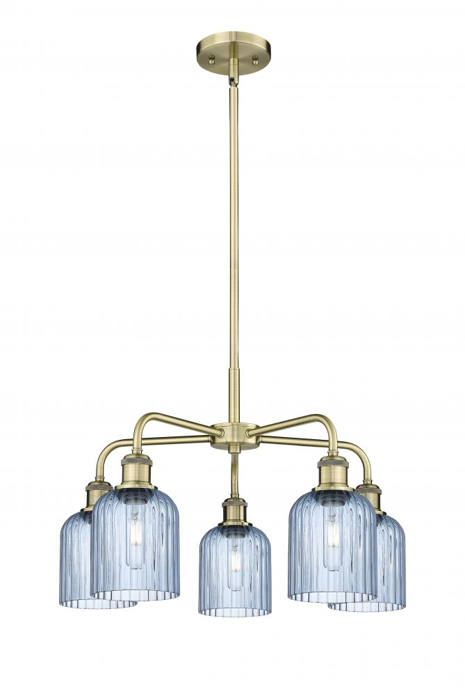 Bridal Veil - 5 Light - 23 inch - Antique Brass - Princess Blue Shade - Chandelier