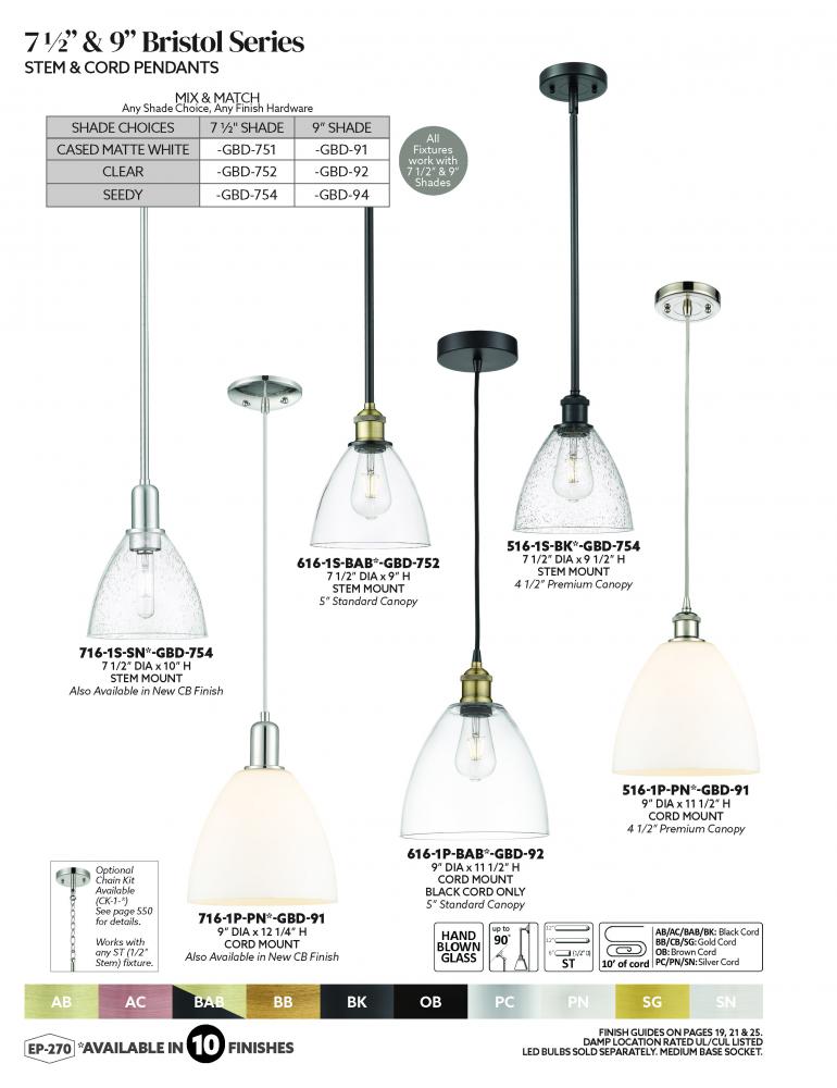Bristol - 1 Light - 8 inch - Brushed Satin Nickel - Stem hung - Mini Pendant