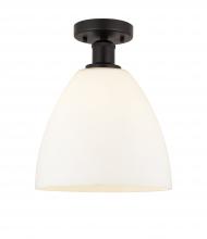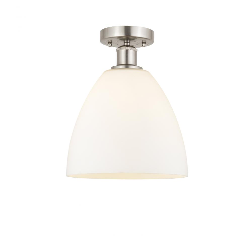 Bristol - 1 Light - 9 inch - Brushed Satin Nickel - Matte White Shade - Semi-Flush Mount