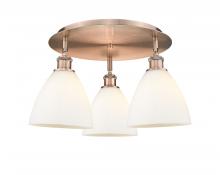 Bristol - 3 Light - 19 inch - Antique Brass - Matte White Shade - Semi-Flush Mount