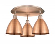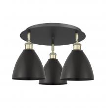 Bristol - 3 Light - 19 inch - Antique Brass - Antique Brass Shade - Semi-Flush Mount