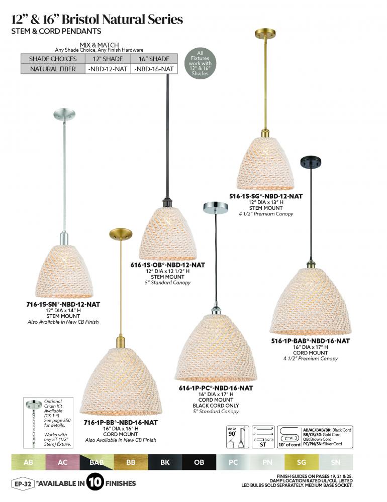 Innovations Lighting 616-1P-AB-NBD-9-NAT - Bristol Natural - 1 Light - 6 inch - Antique Brass - Cord hung - Mini Pendant