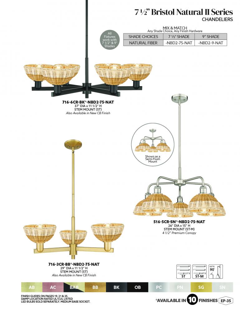 Innovations Lighting 716-6CR-AB-NBD-9-NAT - Bristol Natural - 6 Light - 39 inch - Antique Brass - Stem hung - Chandelier