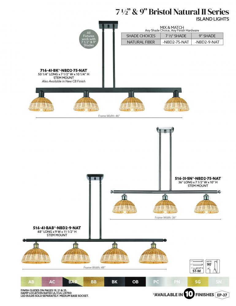 Innovations Lighting 716-4I-AB-NBD2-9-NAT - Bristol Natural II - 4 Light - 52 inch - Antique Brass - Stem hung - Island Light