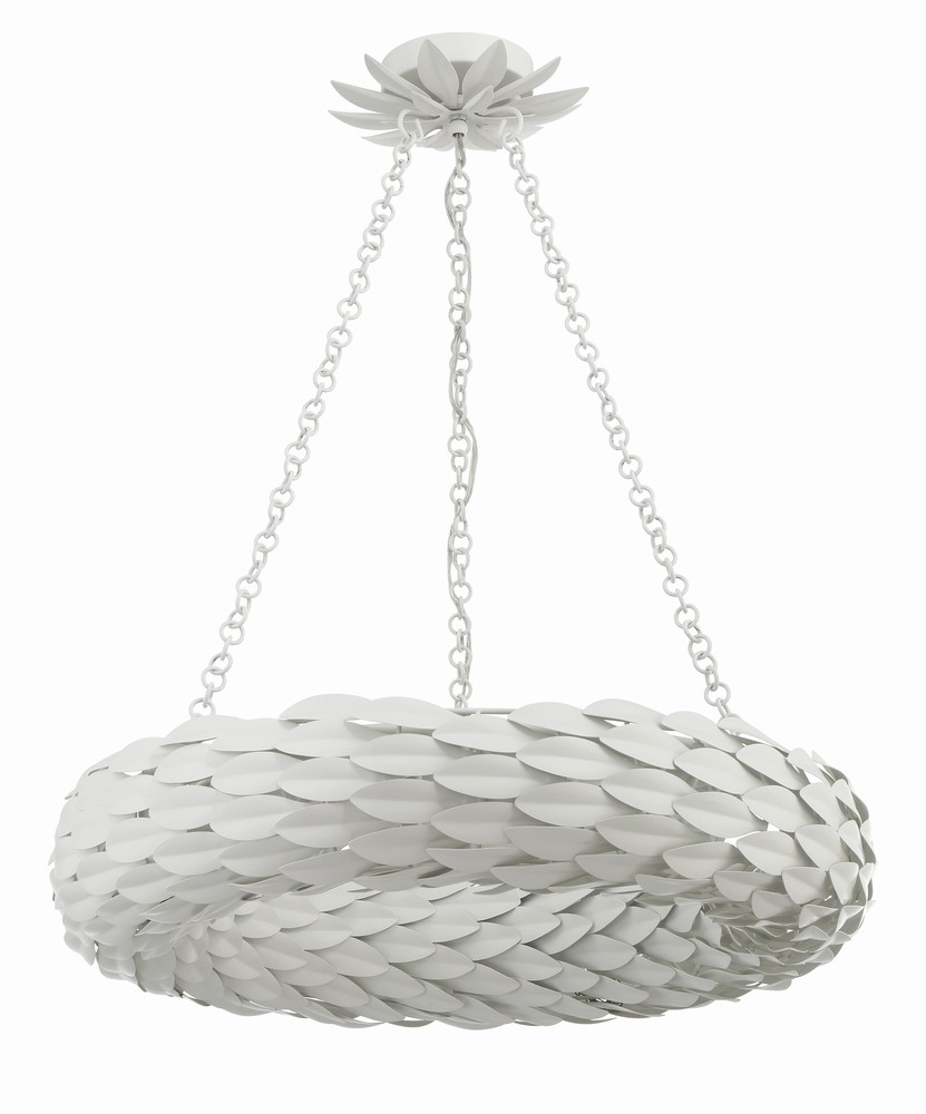 Matte white metal finish pairs well with any décor style. The velvety, non-glossy sheen offers a dramatic contrast to a room.