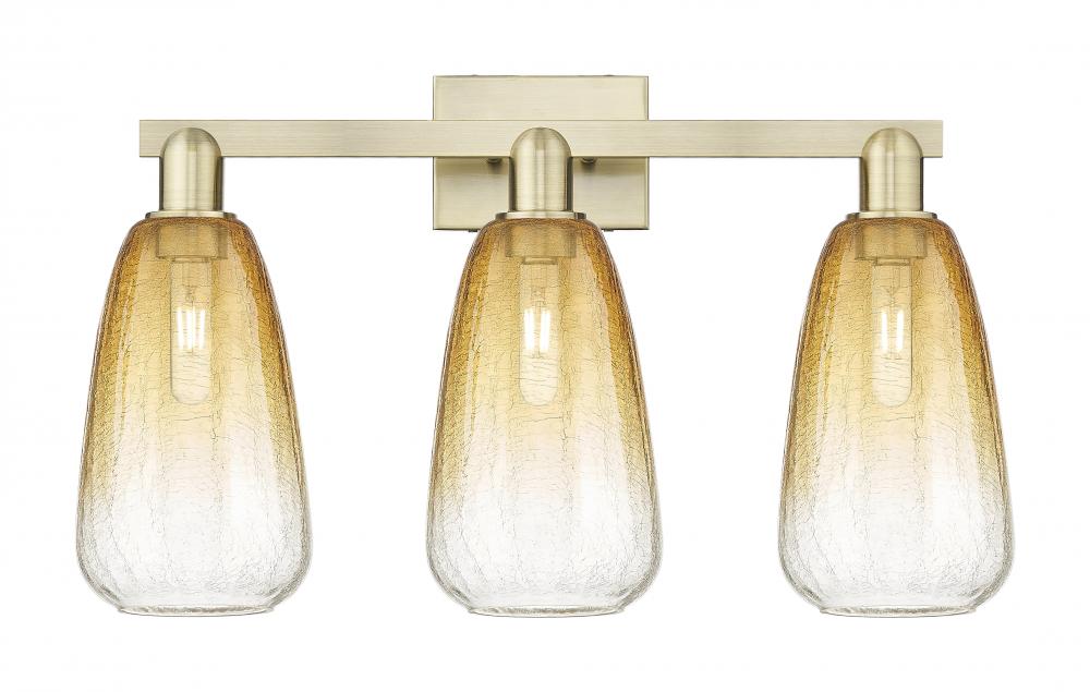 Brookhaven Almond - 3 Light - 26 inch - Antique Brass - Amber Brookhaven Almond Shade - Bath Vanity Light