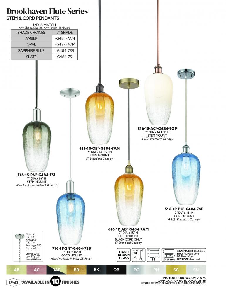 Innovations Lighting 516-1P-AB-G484-7AM - Brookhaven Flute - 1 Light - 7 inch - Antique Brass - Cord hung - Mini Pendant