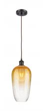 Brookhaven Flute - 1 Light - 7 inch - Antique Brass - Amber Brookhaven Flute shade - Cord hung - Mini Pendant