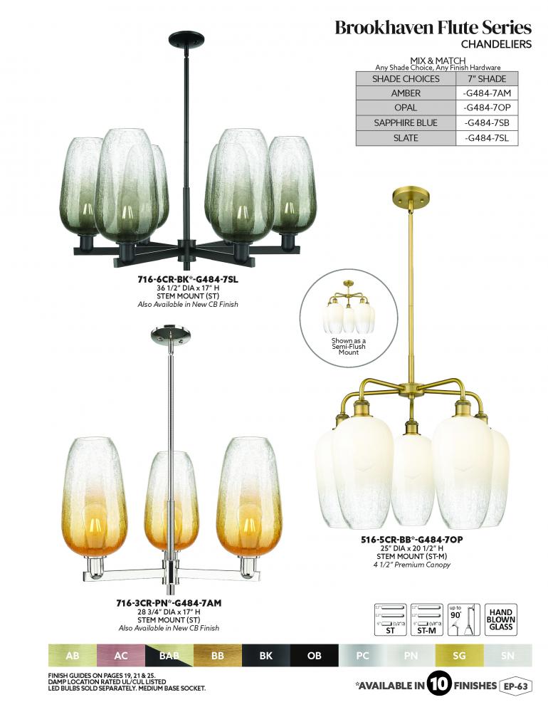 Innovations Lighting 516-1S-AB-G484-7AM - Brookhaven Flute - 1 Light - 7 inch - Antique Brass - Stem hung - Mini Pendant
