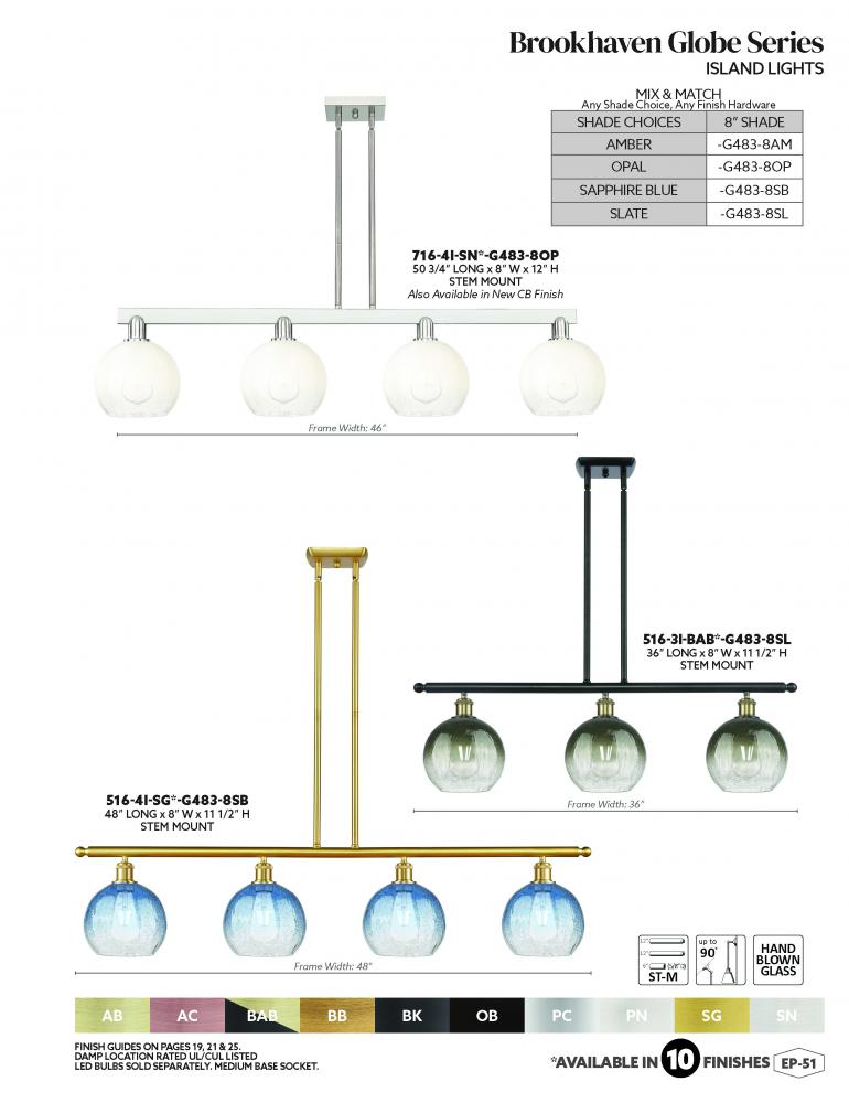 Innovations Lighting 516-4I-AB-G483-8AM - Brookhaven Globe - 4 Light - 48 inch - Antique Brass - Stem Hung - Island Light