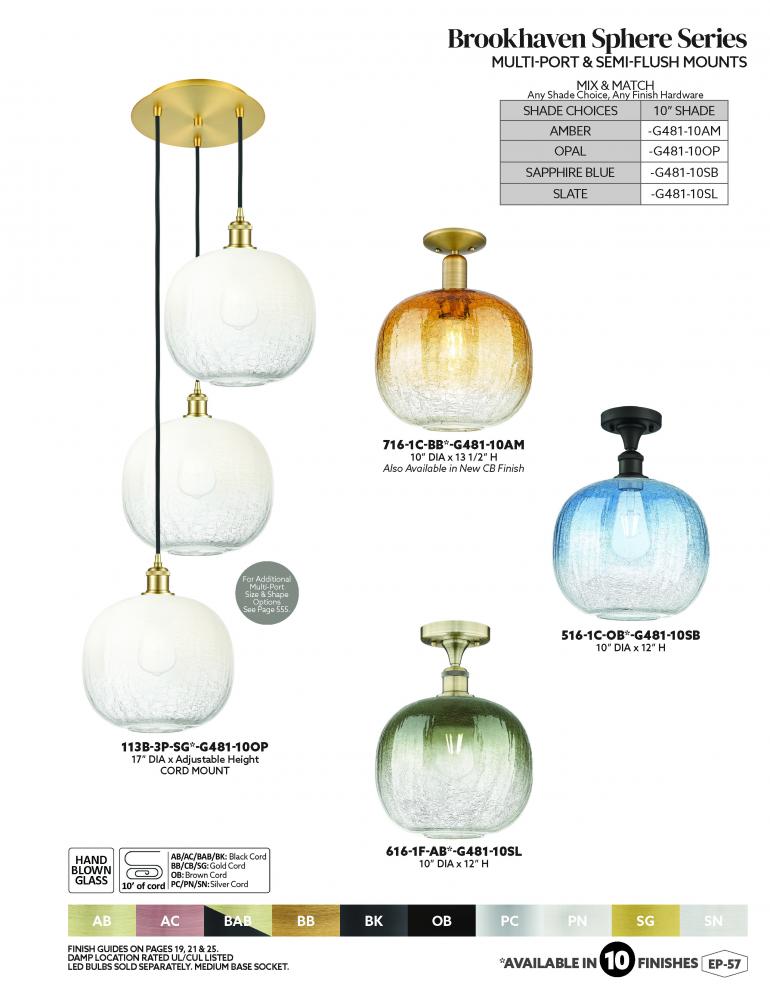 Innovations Lighting 716-1P-BB-G481-10SL - Brookhaven Sphere - 1 Light - 6 inch - Brushed Brass - Cord hung - Mini Pendant