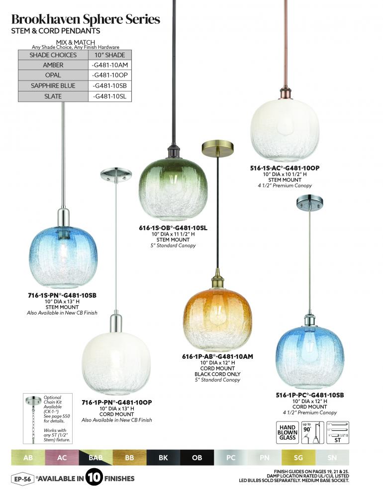 Innovations Lighting 516-1P-AB-G481-10AM - Brookhaven Sphere - 1 Light - 11 inch - Antique Brass - Cord hung - Mini Pendant