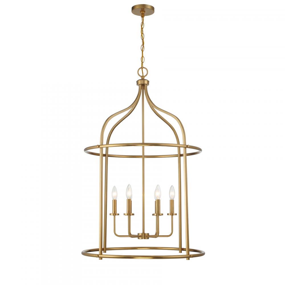 Brighten up boldly with the Savoy House Brookstone 6-light lantern. It has a simply elegant open lantern style and a lovely Warm Brass finish. At 40" in height and 26" in width, it is a great way to illuminate a large room, like a grand foyer. Brookstone uses six candelabra size bulbs of up to 60 watts per bulb. Bulbs not included.