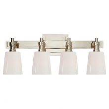 Bryant Four-Light Bath Sconce in Antique Nickel with White Glass