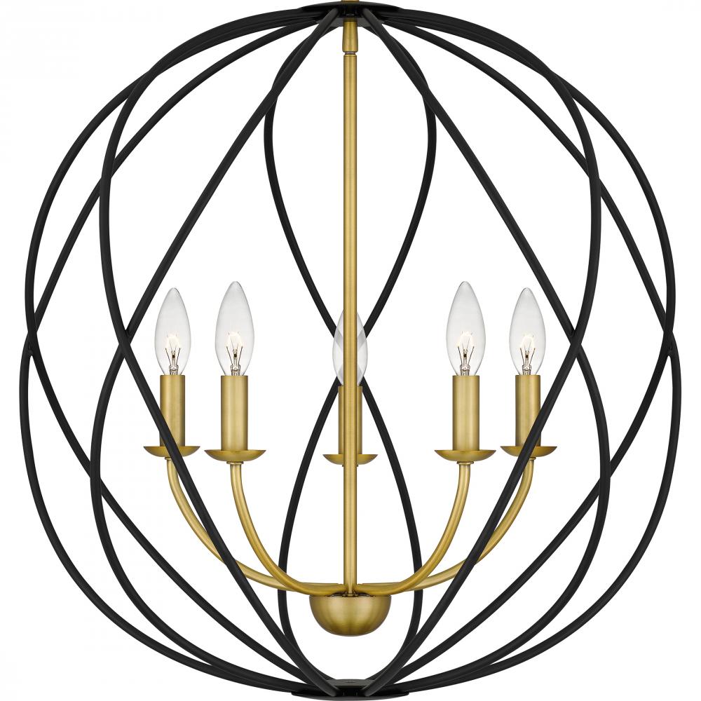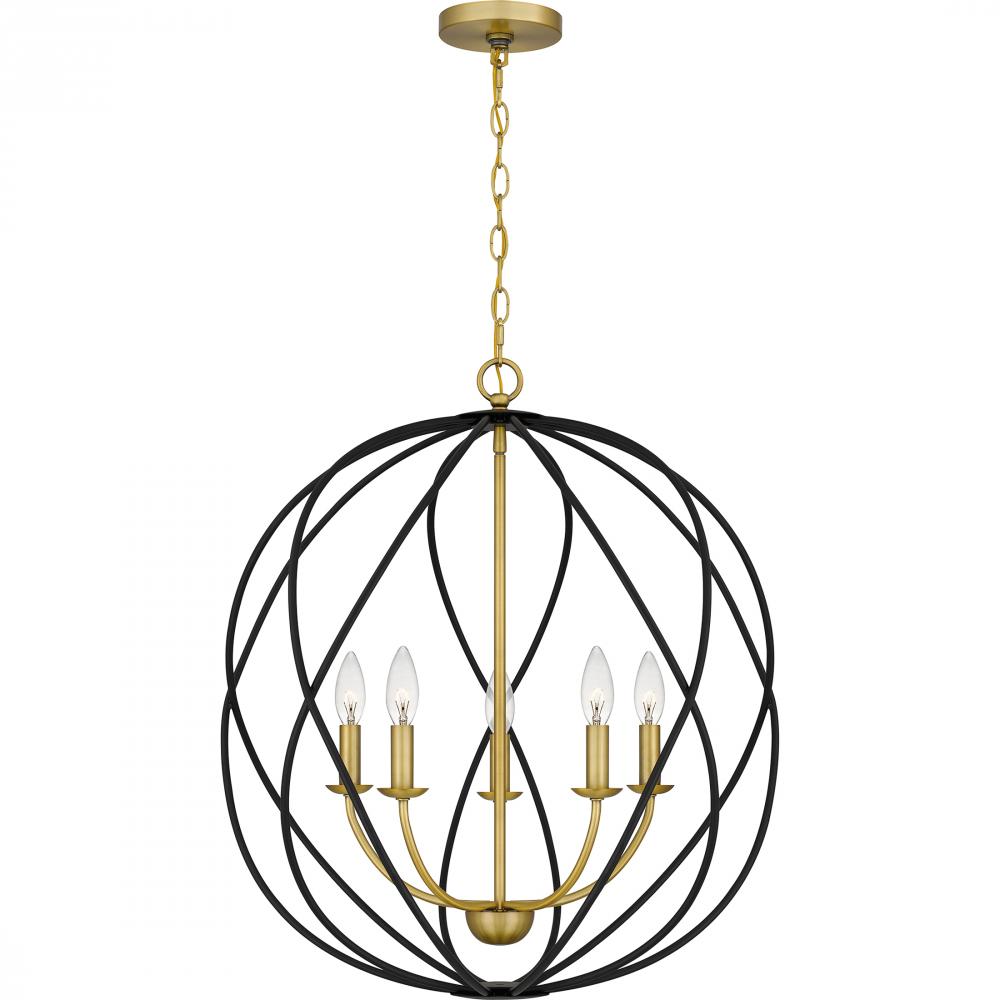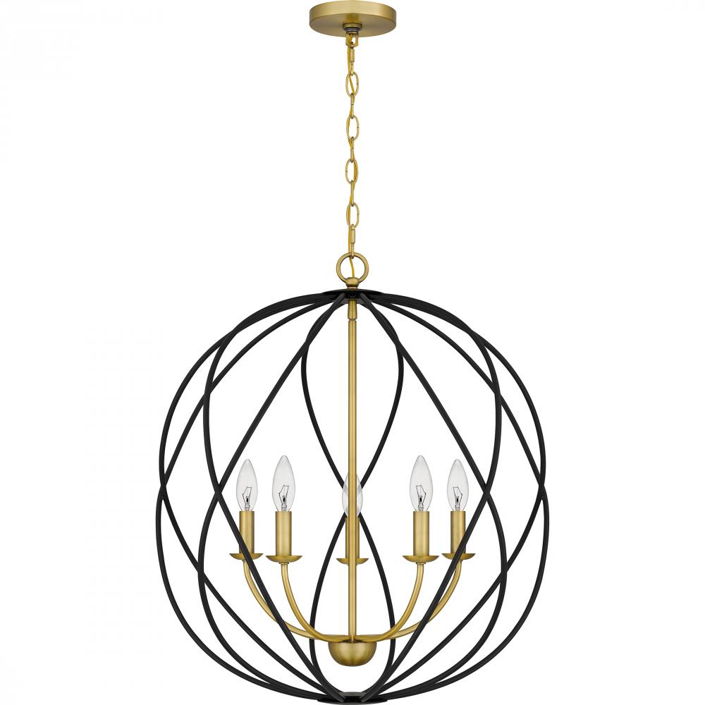 Pendant 5 lights aged brass