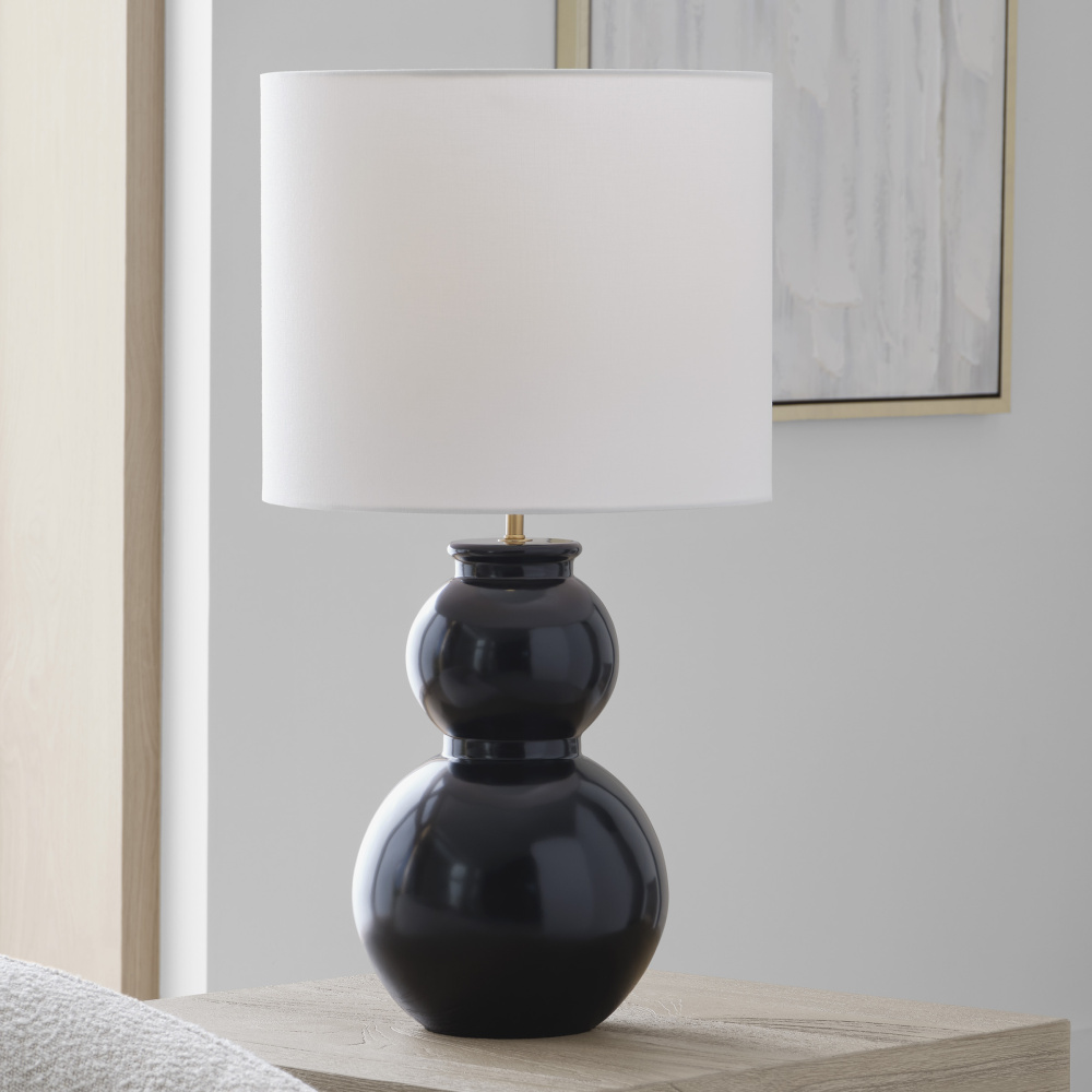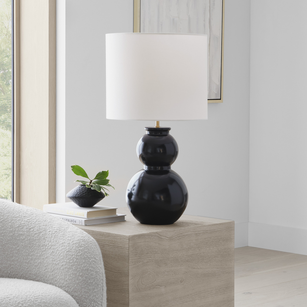 Designed by Drew & Jonathan Scott, Buckley is a classic gourd-style table lamp series in three saturated hues. Symmetrical lines give the traditional shape a modern look. Each is topped with a beautiful white linen shade; these table lamps are crafted of glass in three finishes that flow to the base.