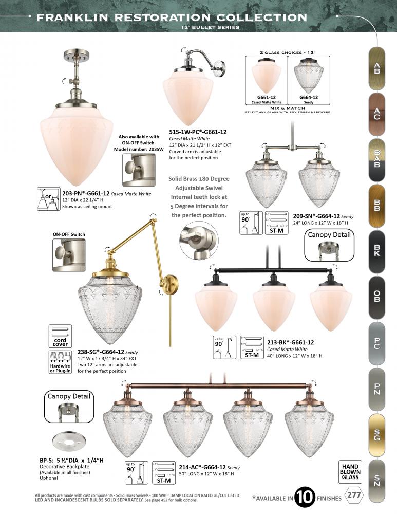 The Franklin Restoration collection is comprised of heavy cast components that give the fixture a heavy Industrial look and feel. We offer the fixture in 10 finishes with a Bare Bulb look or with over 100 possible metal and glass shade options that can cha