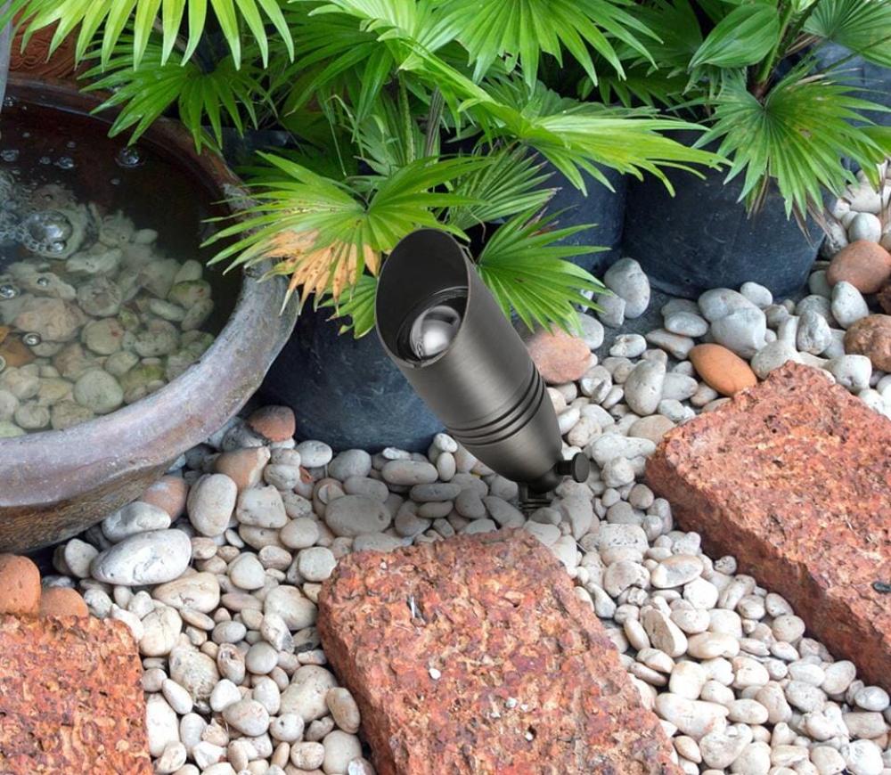 Illuminate your outdoor space with our premium 12-volt cast brass spotlights, designed to bring both durability and elegance to your landscape. Featuring a sleek dark bronze finish, these spotlights seamlessly complement any setting while delivering focused, powerful illumination through a convex glass lens that magnifies the light. Equipped with an MR16 halogen base (compatible with up to 35-watt bulbs) and a sturdy 8-inch plastic mounting stake, installation is quick and secure. with 3 feet of electric wire included, you have the flexibility to perfectly position your lighting for maximum effect. Elevate your outdoor aesthetics with these reliable, high-performance spotlights that are built to withstand the elements and shine brightly for years to come.