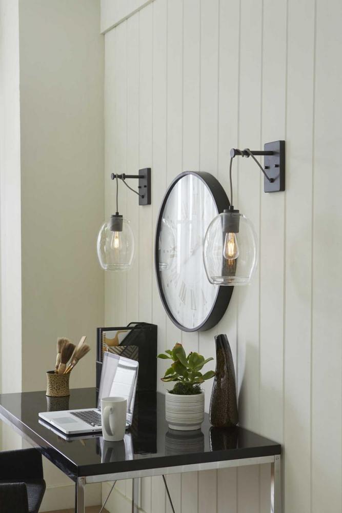 Infuse your home with the subtle industrial flair of this wall bracket.;A clear glass shade with a rolled rim at the bottom adds an extra touch of artisan inspiration.;Inspired by the outstanding architecture of suspension bridges, the light fixture featur