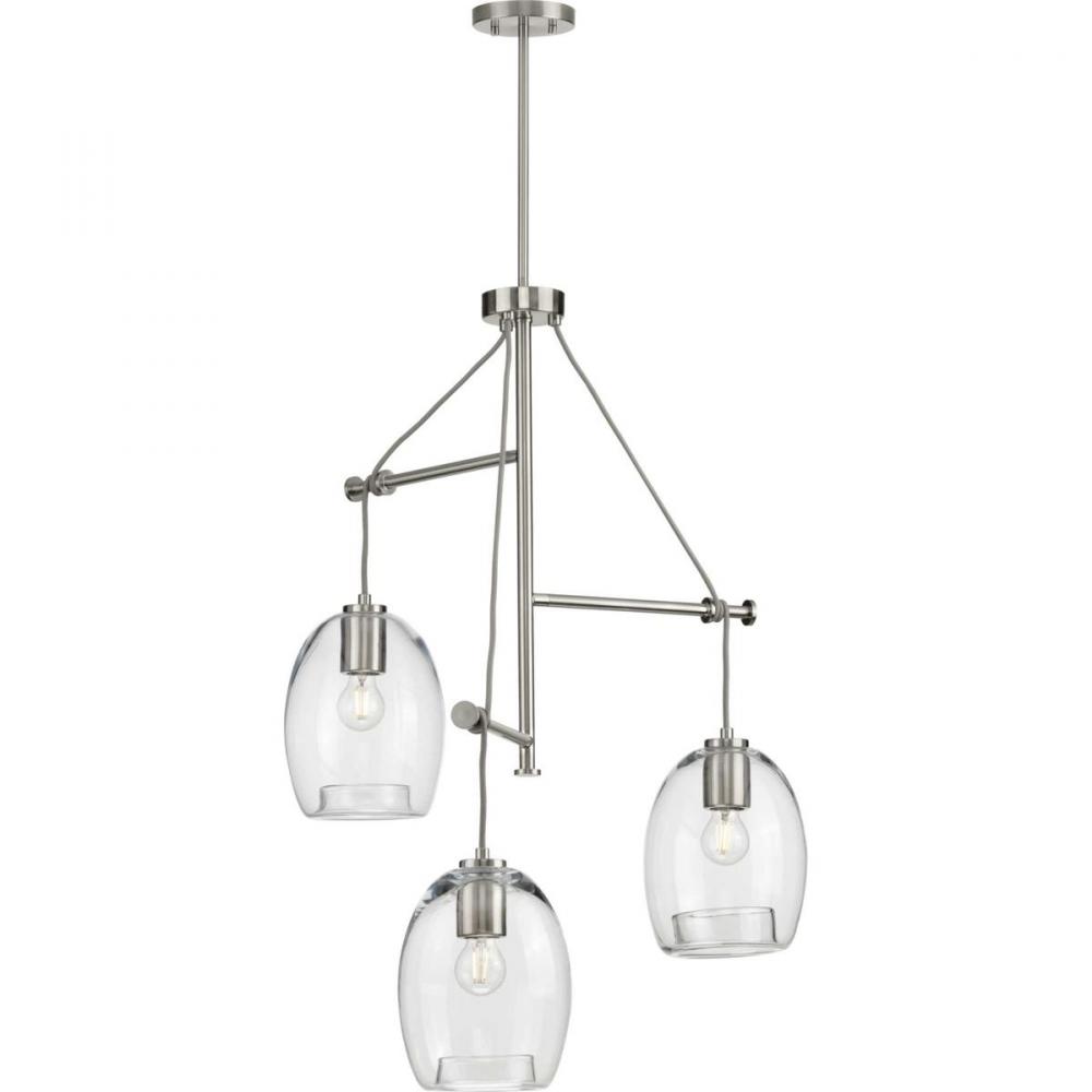 Progress P500160-009 - Caisson Collection Three-Light Brushed Nickel Clear Glass Global Pendant Light